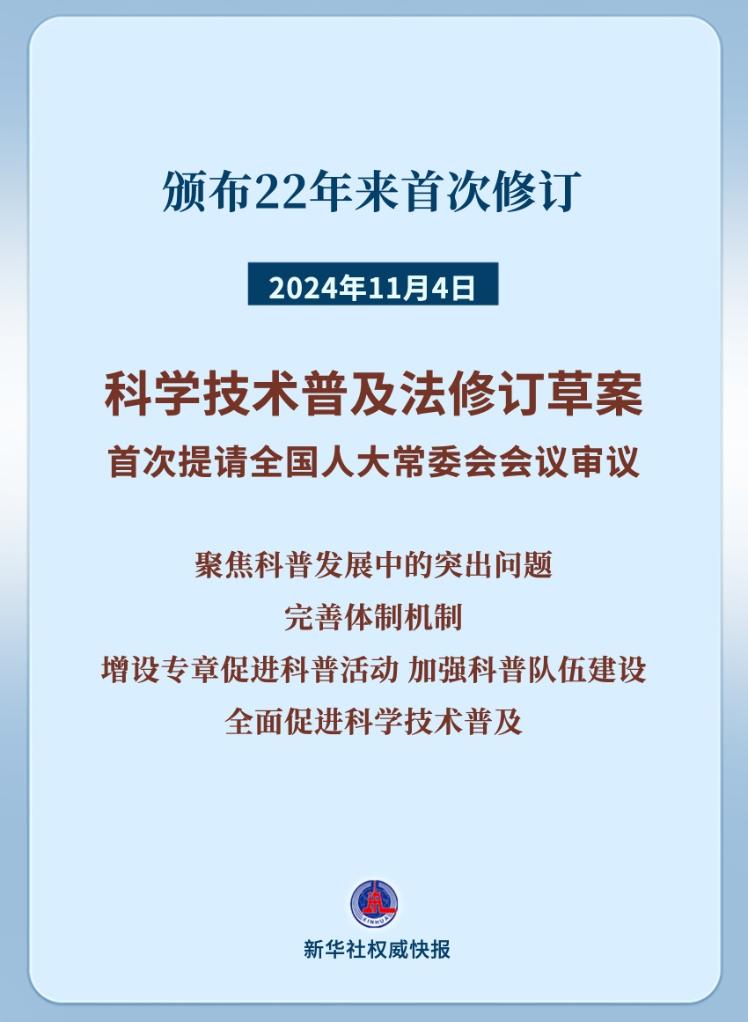 新华社北京11月4日电 题:科学技术普及法22年来首次修订!筑牢大国科普基石