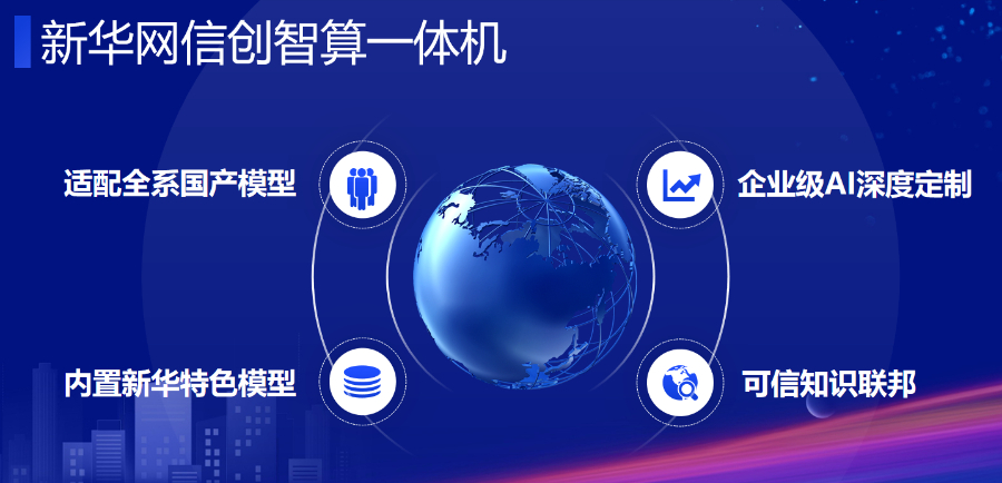 其中,全新打造的“新华网信创智算一体机”具有四大特色优势:一是GPU芯片与基座模型全信创,云端算力资源补充,支持企业AI场景创建弹性可扩展;二是内置多种新华网特色模型,支持业务快速落地;三是通过企业知识引擎及AI工具链,让大模型更懂企业,支撑企业级AI应用的持续落地;四是通过可信知识联邦,在数据隐私安全前提下,打通产业链上下游业务数据与行业专家数据,升维AI+产业服务效能。