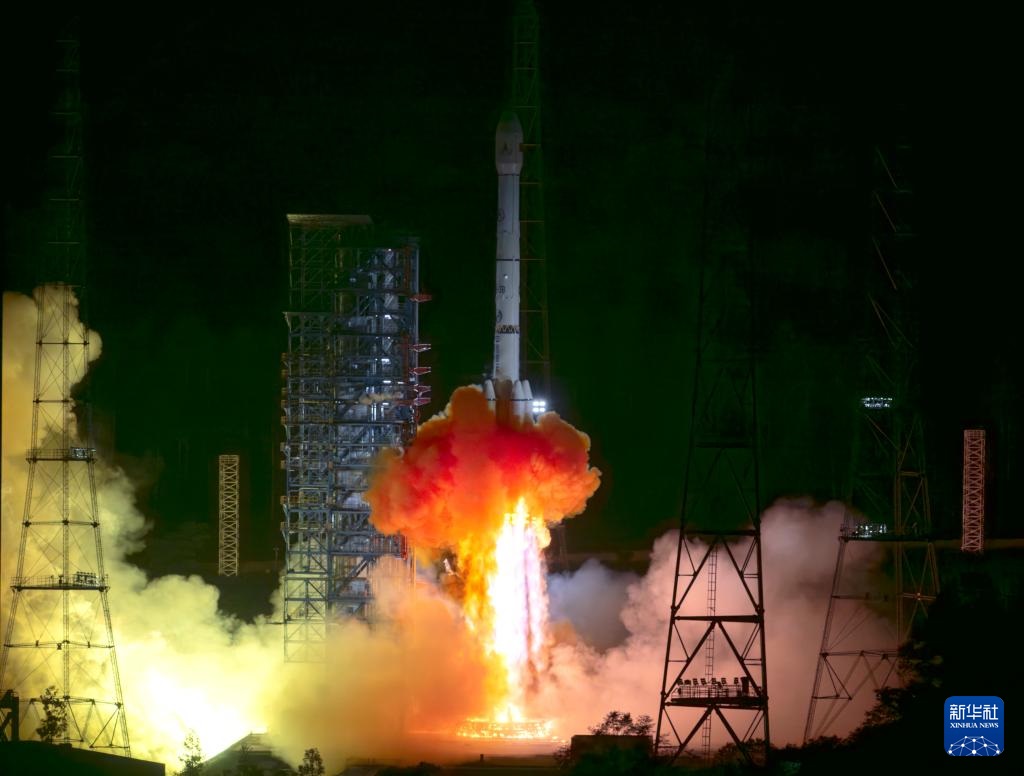 新华社西昌5月29日电(记者宋晨、刘祯)5月29日凌晨,西昌卫星发射中心,长征三号乙运载火箭托举行星探测工程天问二号探测器直冲霄汉。