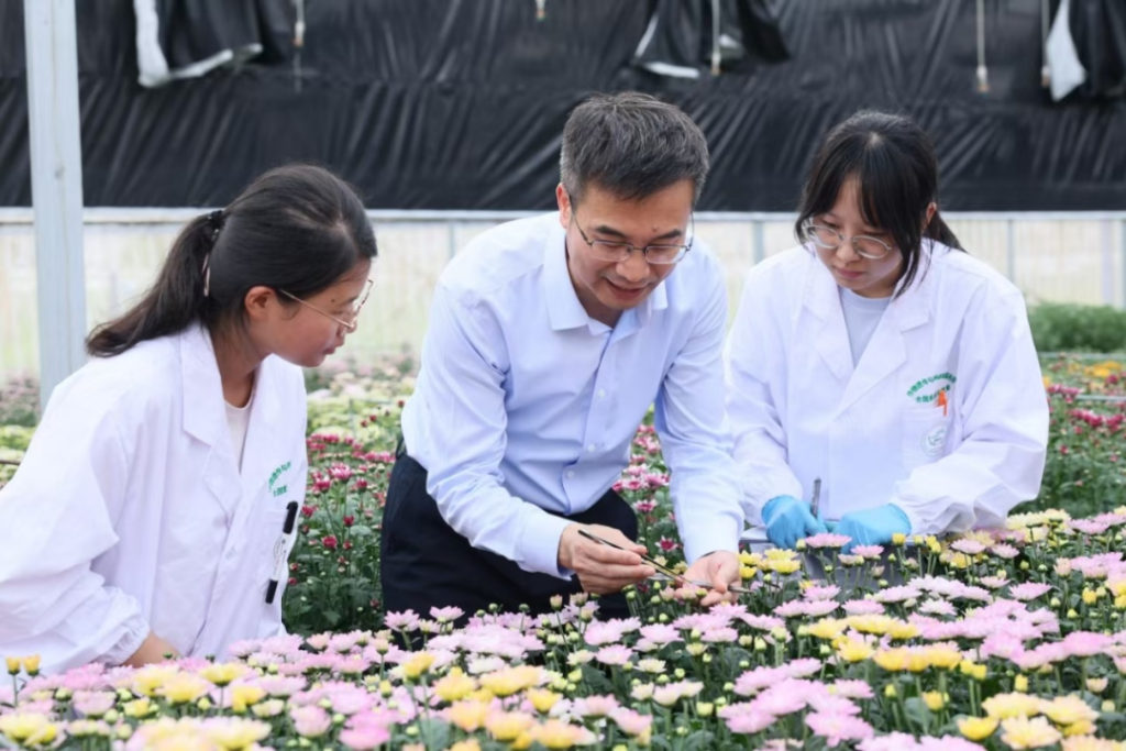 在这些珍贵资源基础上,近年来,团队持续选育出不同花期的切花菊、园林小菊、盆栽小菊等系列新品种400余个,为“中国花”用“中国种”提供了品种支撑。截至2025年,团队育成的切花菊、园林小菊品种已分别占我国市场上相关商业化品种的30%和60%,辐射70%的产区,打破了国外品种垄断。
