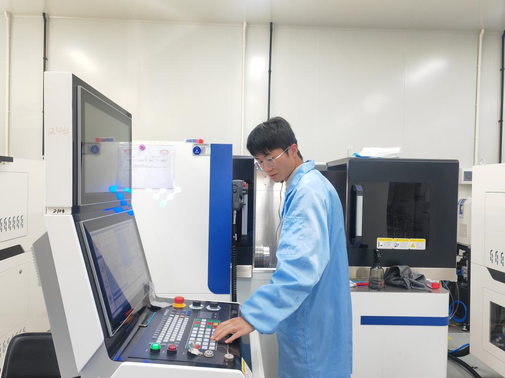 上海米蜂激光科技有限公司昆明生产基地工作人员在操作设备。新华社记者浦超 摄