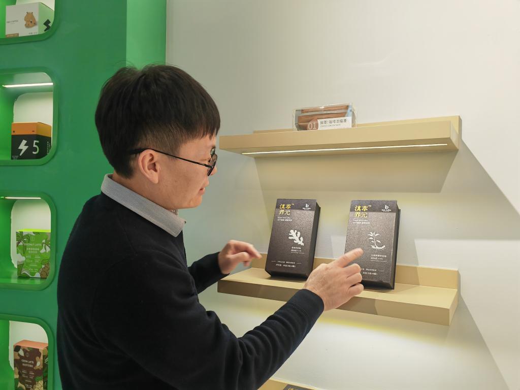 云南巴莱咖啡有限公司总经理孙秀峰在查看产品。新华社记者浦超 摄
