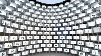 云南特色植物提取实验室内的亚克力柱植物墙。 本报记者 王科 摄