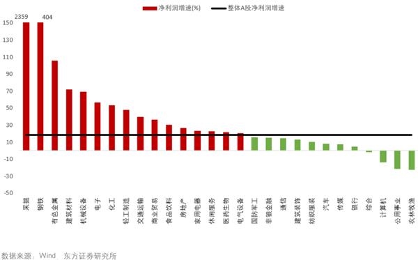 以钢铁行业为例,数据统计,今年一季度和二季度归属母公司净利润增速分别为373.7%和417%。而三季度归属母公司净利润增速为403.9%,环比小幅下滑。因此,一些券商认为周期行业的增速高点或已成过去式。