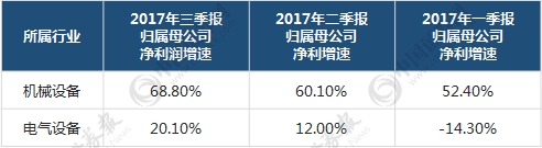 机械设备和电气设备的三季度业绩同样可圈可点。虽然对比其他板块,这两个板块净利润增速并不出挑。但从纵向来看,两者已连续两个季度呈现稳步上升态势。