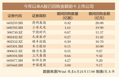 Wind数据显示,今年以来,截至6月24日17:00,去除重复项后,有超过1900家上市公司发布回购公告。
