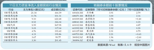 盘面看,11日全市场成交近7900亿元,创6月14日以来新高,交易情绪显著回暖。Wind数据显示,当日沪深两市主力资金净流入超60亿元,北向资金净流入超30亿元。