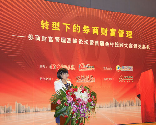 主持人:尊敬的各位来宾、女士们、先生们下午好!欢迎来到2012券商财富管理高峰论坛暨首届金牛投顾大赛颁奖典礼现场,我是中国证券报·中证视频的主持人王晶,很高兴能跟各位一起度过这美好的下午相聚,一起分享和见证这场券商的盛会!