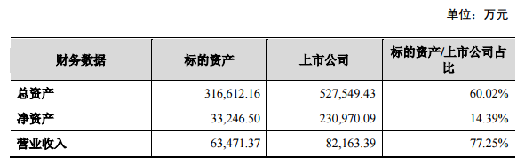 标的资产和上市公司的总资产分别为316,612.16万元和527,549.43万元,标的资产占上市公司总资产比例为60.02%。