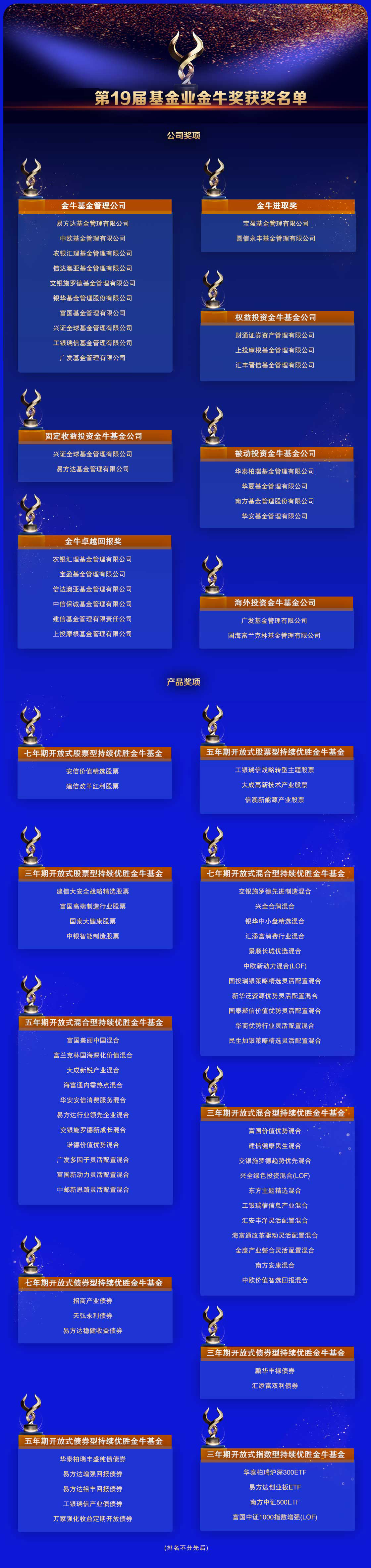 第十九届基金业金牛奖揭晓 富国基金成大赢家揽获6项金牛奖