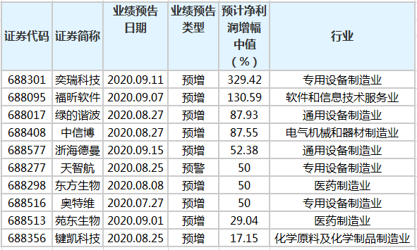 具体到个股看,奕瑞科技预计净利润增幅最高。公司预计前三季净利润增幅中值为329.42%;福昕软件、绿的谐波预计净利润同比增幅中值分别为130.59%、87.93%,增幅位列第二、第三。