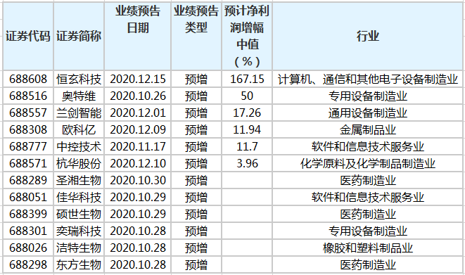 37家科创板公司预告2020年业绩 12家业绩预增