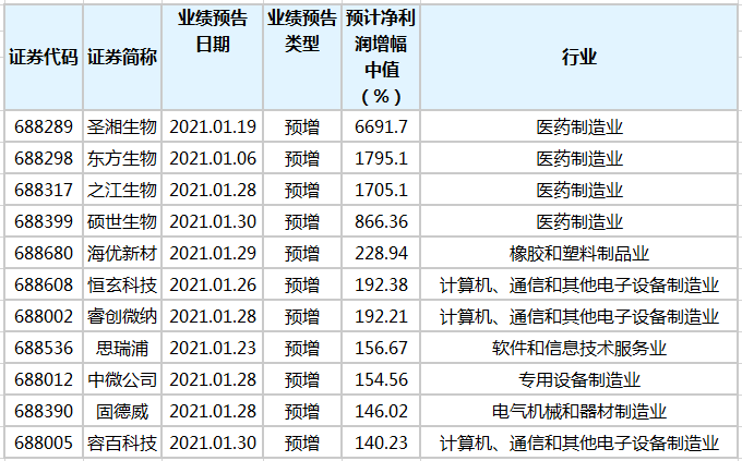 证券时报网讯,证券时报·数据宝统计显示,截至2月1日,有115家科创板公司公布了2020年业绩预告。业绩预告类型显示,预增公司75家;业绩预降公司14家、预亏公司有10家。以预计净利润增幅中值统计,共有20家公司净利润增幅超100%;净利润增幅在50%~100%之间的有38家。