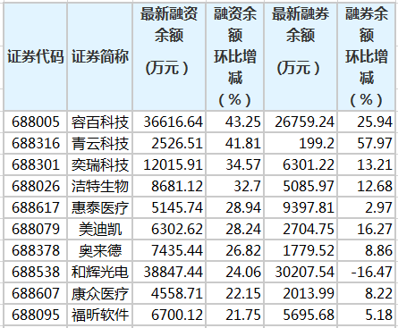 证券时报网讯,数据宝统计显示,5月31日共有194只科创板个股融资余额环比增加。其中,12股融资余额增幅超过20%。融资余额增幅较大的有容百科技、青云科技、奕瑞科技等股。融券余额来看,222只科创板个股融券余额环比增加,融券余额增幅较大的有罗普特、安博通、东来技术等股。