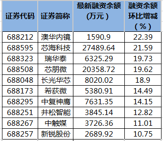 澳华内镜等10只科创板股融资余额增幅超10%