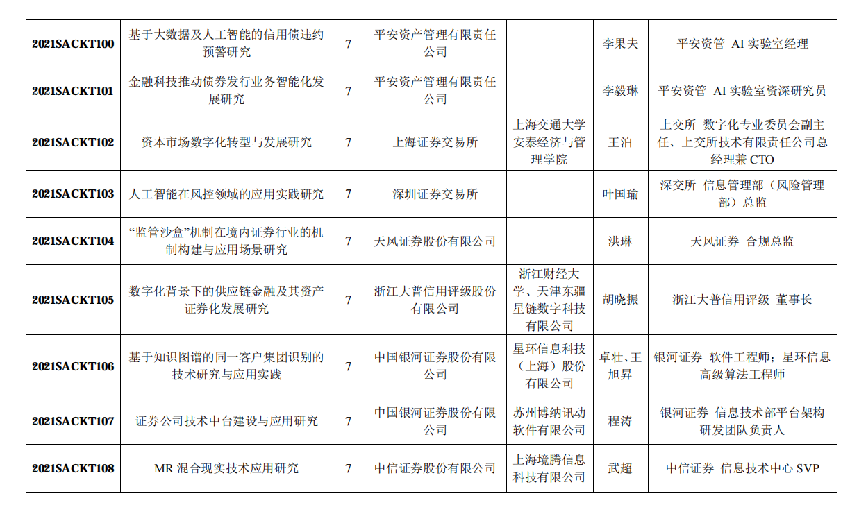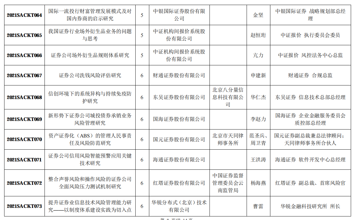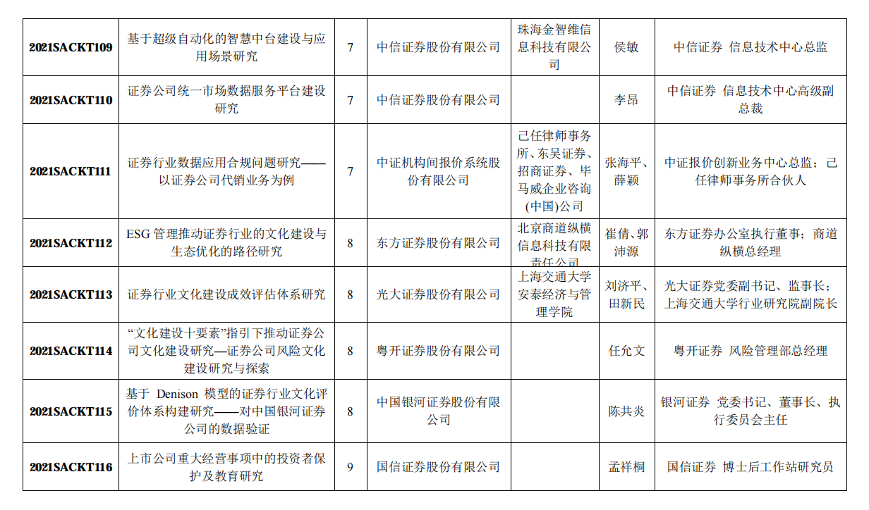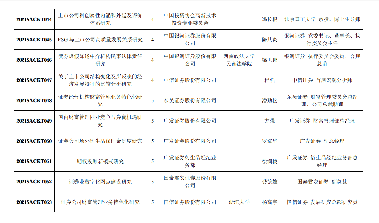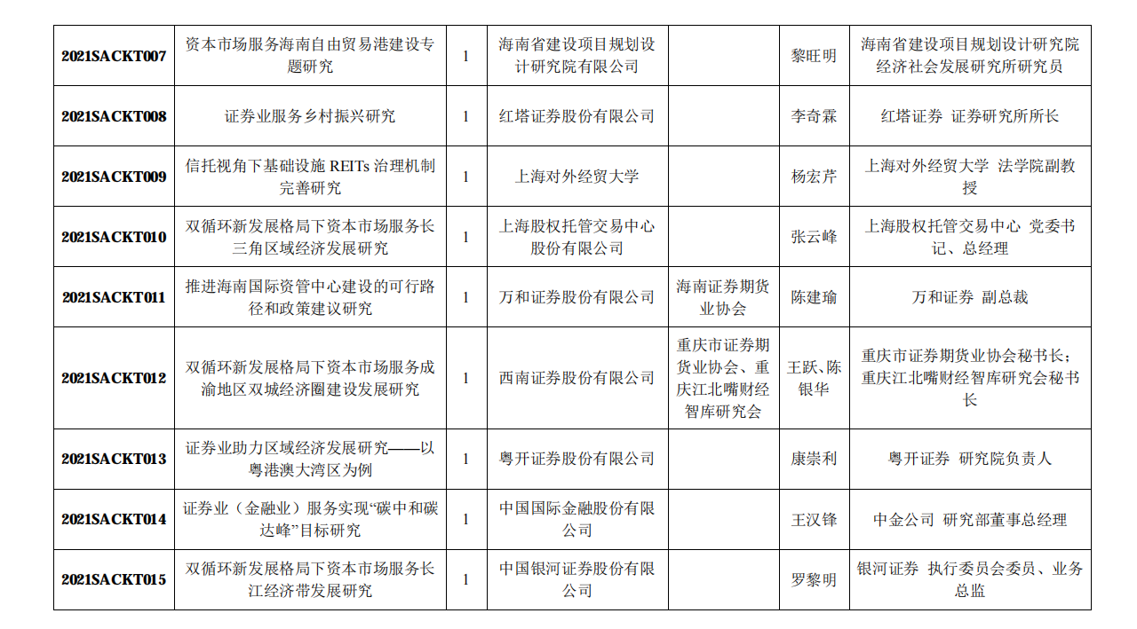 附:中国证券业协会2021年重点课题研究立项名单