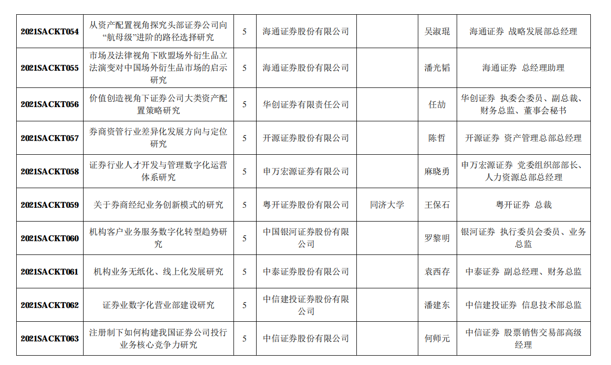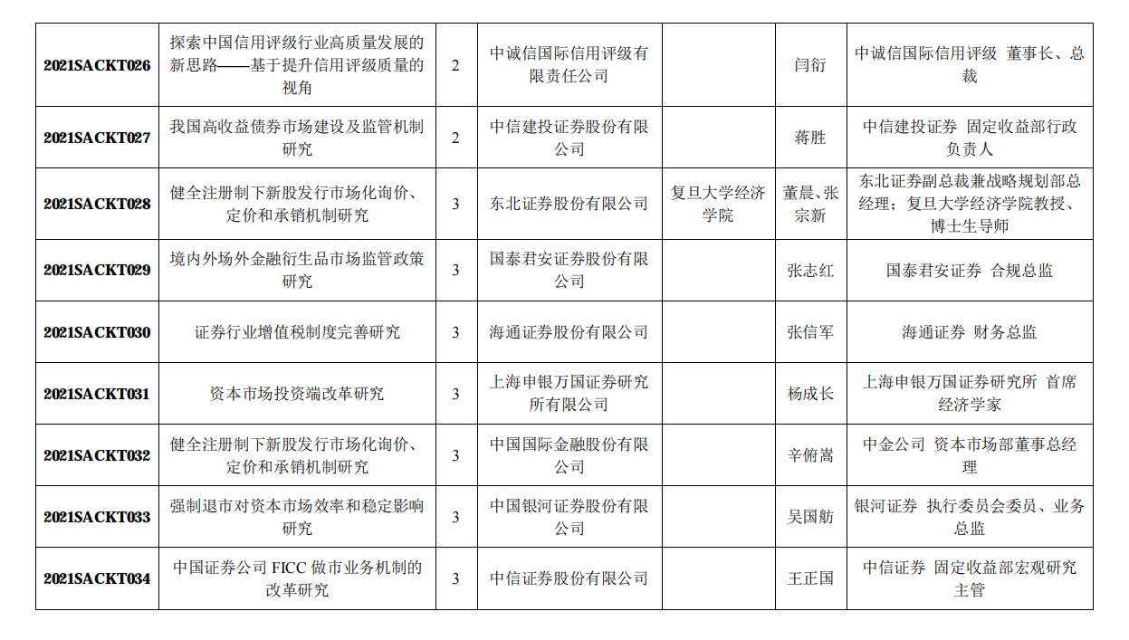 中国证券业协会公布2021年120项重点课题研究立项名单