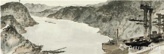 傅氏客杭期间的创作主要有两类:一是写生,1964年浙江人美出版了《傅抱石浙江写生画选》,收录《钱塘江》《保俶塔》《西泠暮韵》《城隍山》《新安江印象》等12幅,另外还有《新安江图》横幅一卷,都藏于杭州博物馆。