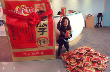 12月2日,名为Paco的网友因参加洽洽食品官方微博的竞猜活动获胜,赢得最终大奖“史上最大袋瓜子”,该袋瓜子高为2.1米、内装118袋小包瓜子。据了解,获奖网友为一名上海女白领,目前就职于优酷土豆集团,活动主办方已于当天上午将奖品送达其公司。
