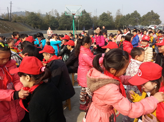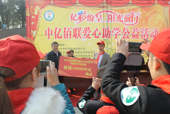 25日早八点,中亿佰联整装列队,承载着满满的爱心驱车前往“亿彩纷呈,阳光前行”活动主场所—湖南省郴州市苏仙区塘溪乡和平村塘溪学校。学生代表以替每位志愿者系红领巾的方式表示对来访者的欢迎,郴州区域的各加盟企业心系贫困地区的教育事业,捐赠价值10万的学习用品、体育设施、教学设备、书籍,希望为孩子们的教育提供一个良好的环境。在经过捐赠授牌仪式,双方领导发言,升旗等一系列的开场仪式之后,志愿者与学生共同表演手语操的《让爱传出去》,届时孩子们的欢声笑语将捐赠活动气氛烘托得异常温馨,成为了中亿佰联志愿者们最好的一份圣诞礼物。最后学校领导热情邀请志愿者们参观中亿佰联“阳光教室”,为此次活动画上了圆满的句号。