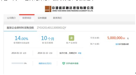 同时,该项目由中源盛祥融资担保有限公司进行借款担保,据了解,中源盛祥融资担保有限公司成立于2009年,注册金额5亿元,在行业内拥有风险控制能力和诚信代偿记录的良好口碑,与多家银行及金融机构建立有互信合作关系,其对于还款的第三方担保,是项目投资人权益的“双重保险”。