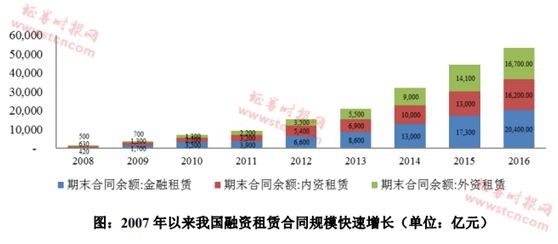 数据显示,2016年底,融资租赁合同余额约5.33万亿元,比2007年240亿元的总量增长222倍。随着监管政策的逐步放开,国内融资租赁公司总数由 2007 年的 93 家增长到 2016 年底的 7120 家。租赁公司中,金融租赁公司数量比较少,截至 2016 年底, 仅有59 家。但凭借融资渠道以及风险管理水平方面的优势,金融租赁在我国租赁市场中占据的市场份额却最高。