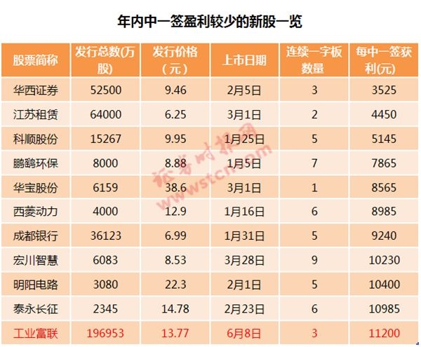 按照富士康13日24.97元的成交均价计算,中一签富士康新股的盈利仅为11200元,将归入年内最不赚钱的新股之列。