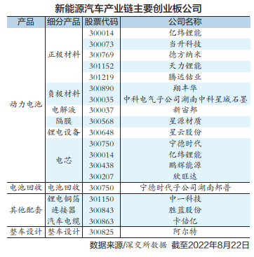 创业板绿色低碳“大营”聚集了一批来自新能源汽车、电化学储能、新能源电源设备产业的公司。截至目前,共有140家绿色低碳企业在创业板上市,总市值近3万亿元。2019年至2021年,创业板绿色产业企业平均营业收入增长率分别为18.99%、15.57%、27.41%,期间复合年增长率为16.04%。以今年备受资本市场关注的新能源汽车产业为例,创业板上市公司覆盖新能源汽车产业链锂电池及电机原材料、电机、电控、电池以及整车设计等多个环节,宁德时代、亿纬锂能、德方纳米等明星公司均在创业板上市。