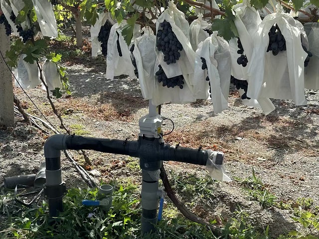 新疆和硕县葡萄园里安装的极飞智能灌溉阀 本报记者 万宇 摄