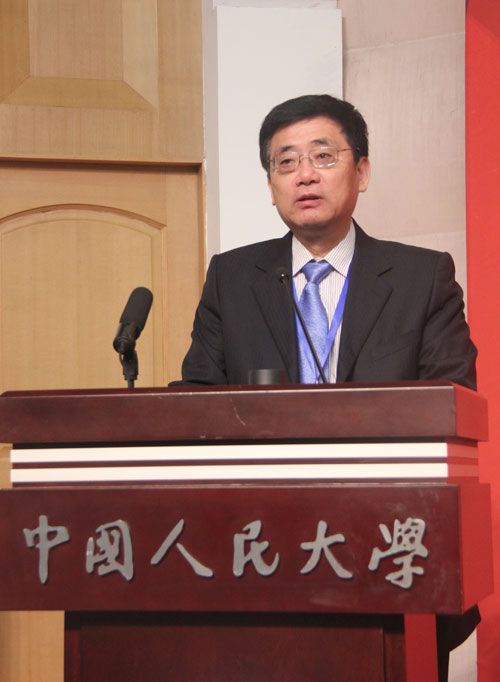 中证网讯 第十八届(2014年度)中国资本市场论坛于2014年1月11日在北京中国人民大学举行。本届论坛的主题是互联网与金融变革。图为中国证券报社社长兼总编辑林晨致开幕词。摄影:本报记者 吕雷