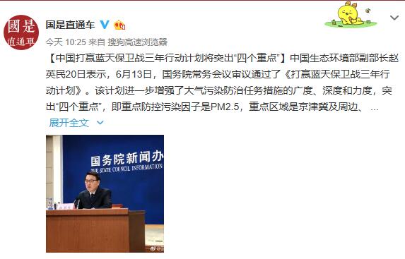 《打赢蓝天保卫战三年行动计划》将突出“四个重点”