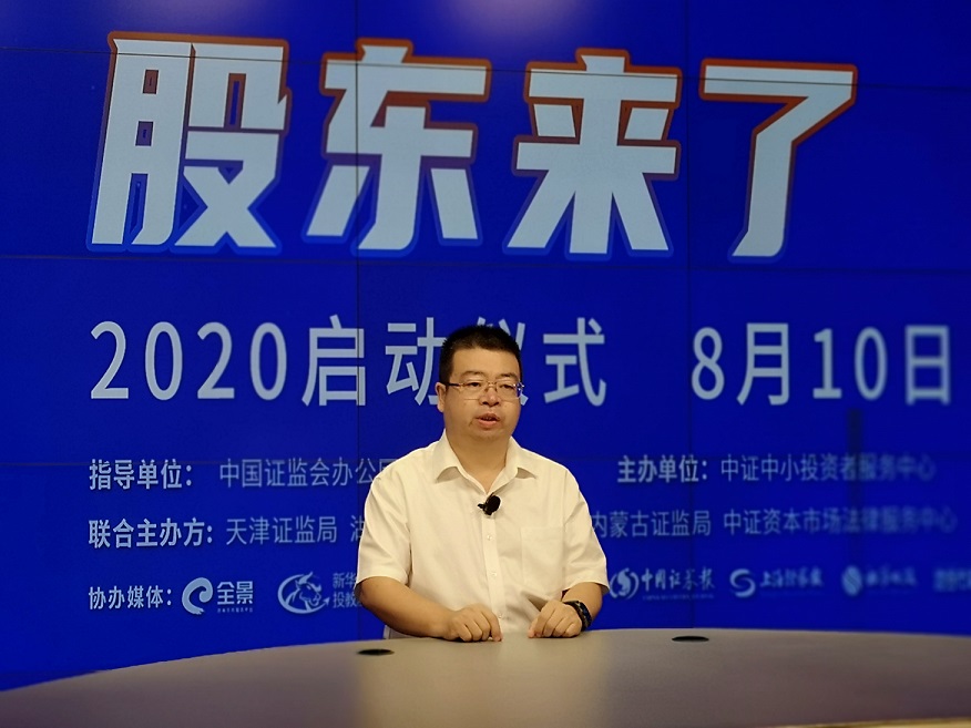 中证网讯(记者 周松林)8月10日,在疫情防控特殊形势下,《股东来了》2020投资者权益知识竞赛通过线上方式正式启动。这是投服中心为宣传新《证券法》,进一步加强投资者保护工作,优化资本市场发展生态的一项重要举措。中国证监会投资者保护局一级巡视员黄明、投服中心董事长郭文英和天津证监局局长毛寒松、湖南证监局局长何庆文、安徽证监局局长叶锦伟、内蒙古证监局局长鱼向东、中证资本市场法律服务中心总经理姜皓等通过视频出席启动仪式。