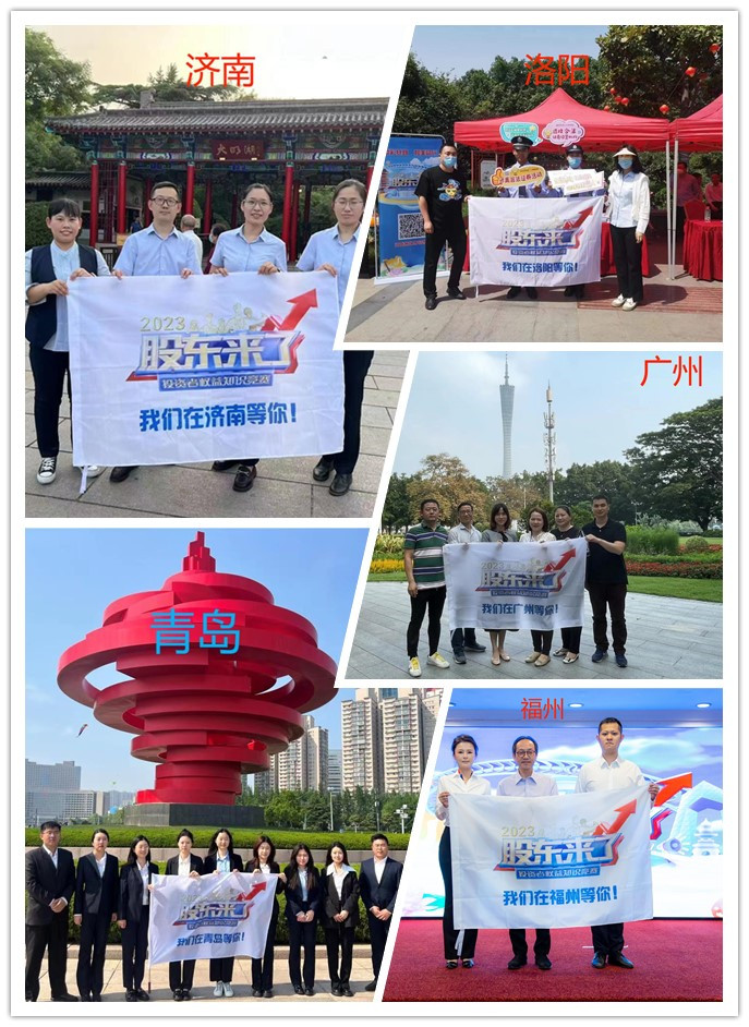 同日,福建赛区开展辖区动员会,辖区近200位证券期货分支机构负责人参会,同时举行了《股东来了》点亮福州仪式;山东赛区在省会济南泉城广场、著名景点趵突泉开展打卡宣传,让竞赛活动贴近百姓生活;河南赛区广泛动员辖区机构积极参赛,中原证券走进上市公司、走进社区、走进高校等活动有序开展,郑州、洛阳2市城市圈同步点亮;广东赛区积极响应,召开启动仪式,点亮地标建筑广州塔,用最美霓虹传递大投保精神;广西赛区组织投资者及证券从业人员走进国海证券、安信证券投资者教育基地,用一堂投教精品课点亮城市圈;宁夏赛区联合南京证券投资者教育基地、辖区各证券期货经营机构围绕“添彩丝路 和美同行 股东来了 我们来了”活动主题,同时点亮银川、吴忠、固原、中卫、石嘴山5市,将《股东来了》(2023)火种传遍赛区;厦门赛区举办赛区启动仪式,诚邀投资者进行扫码答题,提供现场咨询和答疑解惑,营造全民学习金融知识的氛围,引导投资者“全面知权、积极行权、依法维权”;青岛赛区结合辖区“投资者教育和保护百日讲坛”品牌活动积极开展活动宣传推广,并在城市地标的五四广场点亮城市圈。