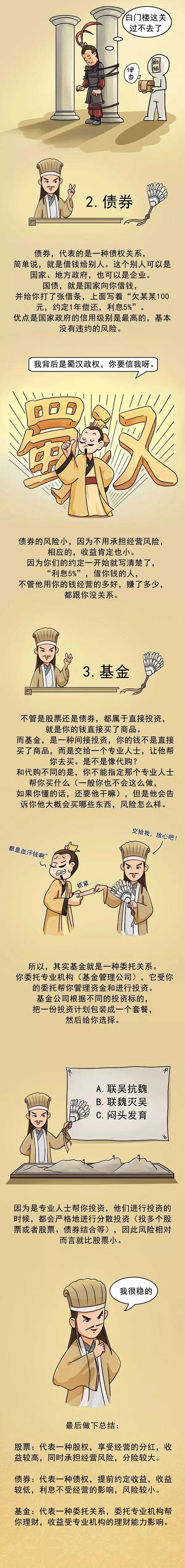 内容简介:让三国蜀汉名将用最通俗的语言带你理清楚什么是基金。基金投资是一种间接的证券投资方式。基金管理公司通过发行基金份额,集中投资者的资金,由基金托管人(即具有资格的银行)托管,由基金管理人管理和运用资金,从事股票、债券等金融工具投资,然后共担投资风险、分享收益。简单来说,基金代表一种委托关系,投资者委托专业机构帮你理财,理财收益受专业机构的理财能力影响。
