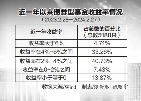 具体产品方面,Wind数据显示,截至2月27日,近一年以来收益率最高的债券型基金为工银可转债债券,高达20.70%。前海开源祥和债券A、东兴兴福一年定开A等混合型债券基金的收益率也超过了10%。
