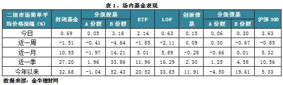 二、场内基金表现:分级股B平均涨逾3%,21只金融类分级股B涨停