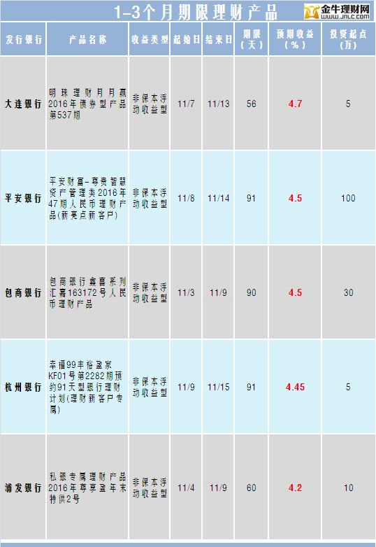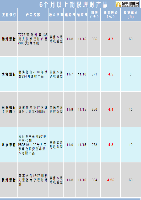 金牛理财网11月9日银行理财收益榜