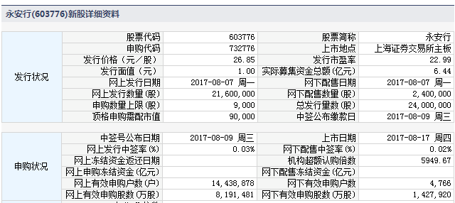 根据交易所公告,常州永安公共自行车系统股份有限公司于2017年8月17日起在上海证券交易所主板上市交易。