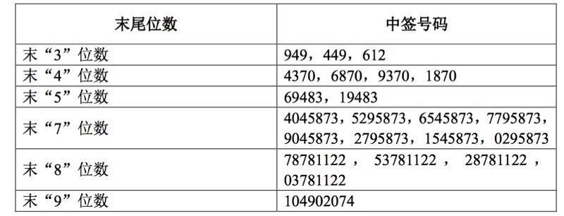 凡参与网上发行申购富士康工业互联网股份有限公司A股股票的投资者持有的申购配号尾数与上述号码相同的,则为中签号码。中签号码共有1,006,101个,每个中签号码只能认购1,000 股富士康工业互联网股份有限公司A股股票。