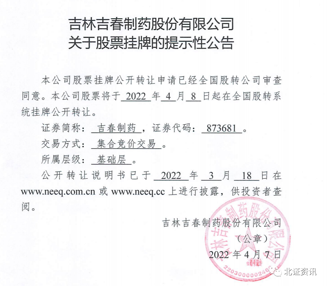 4月8日,吉春制药正式挂牌新三板,成为今年第25家登陆新三板的企业。