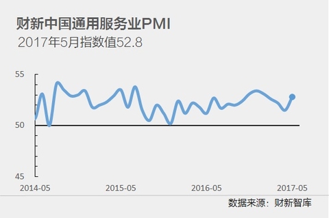 6月5日公布的5月财新中国通用服务业经营活动指数(服务业PMI)数值升至52.8,较4月上升了1.3个百分点,是今年以来首次上涨。
