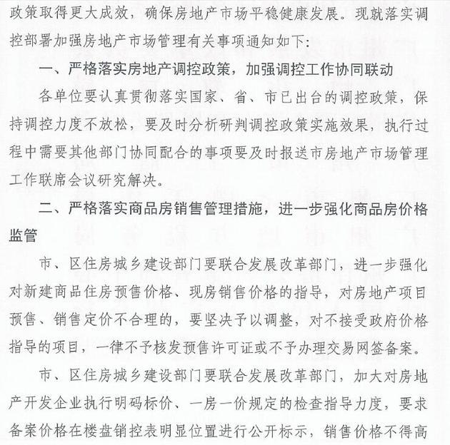 据广州市住房与城乡建设委员会网站消息,广州市8月2日发布《关于严格落实房地产调控部署全面加强市场管理的通知》,通知要求①坚决对预售/销售定价不合理的项目予以调整,不接受政府价格指导的项目一律不核发预售许可证/不予办理交易网签备案;②将会同各相关部门制定实施细则,确保发展租赁市场的各项举措落地;③严格落实土地供应计划,多措并举加大商品住房供应;④严格落实房地产调控信贷措施,加强住房信贷业务风险管理。