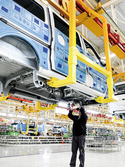 位于河北黄骅的北汽集团黄骅分公司总装车间。