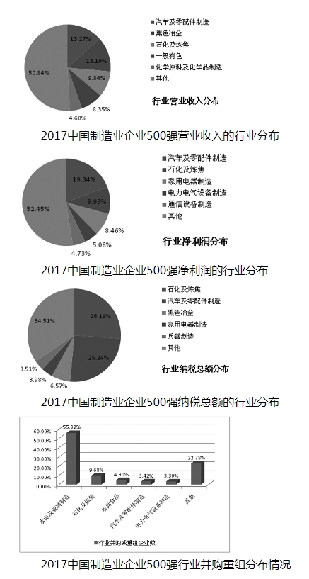 2017中国制造业企业500强行业分布及特征