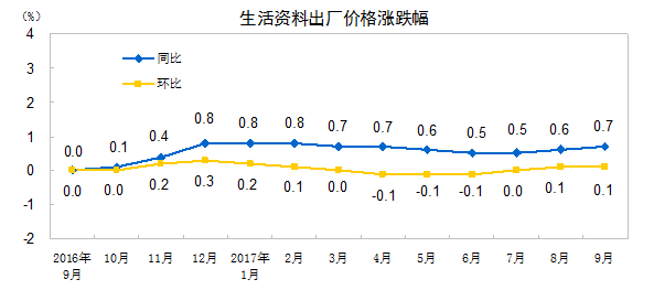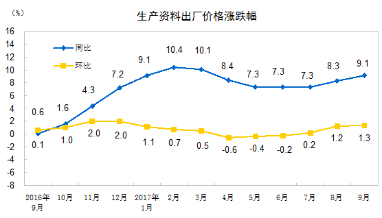 2017年9月工业生产者价格主要数据