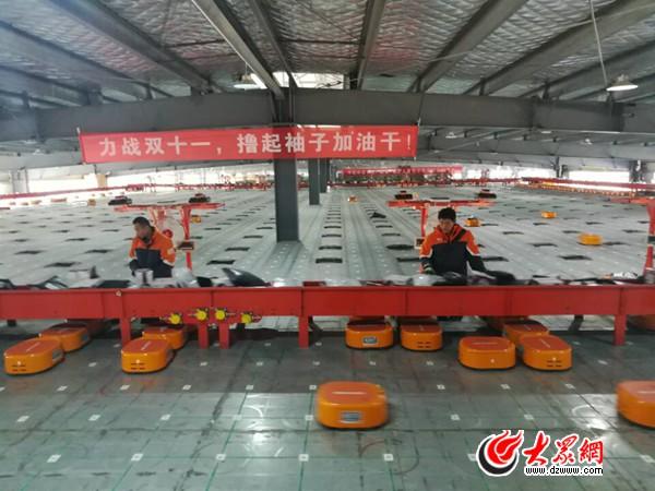 11月10日,大众网记者来到临沂申通产业园,与“小黄人”亲密接触。记者发现,它们干活效率很高,自己有“眼睛”,工作时能通过“看”地面上粘贴的二维码给自己定位和认路。