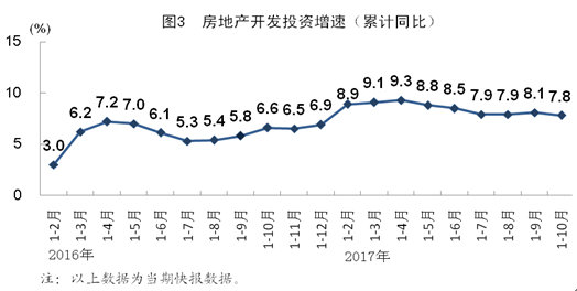 1-10月份,全国房地产开发投资90544亿元,同比增长7.8%,增速比1-9月份回落0.3个百分点,其中住宅投资增长9.9%。房屋新开工面积145127万平方米,同比增长5.6%,其中住宅新开工面积增长9.6%。全国商品房销售面积130254万平方米,同比增长8.2%,其中住宅销售面积增长5.6%。全国商品房销售额102990亿元,同比增长12.6%,其中住宅销售额增长9.6%。房地产开发企业土地购置面积19048万平方米,同比增长12.9%。10月末,全国商品房待售面积60258万平方米,比9月末减少882万平方米。1-10月份,房地产开发企业到位资金125941亿元,同比增长7.4%。