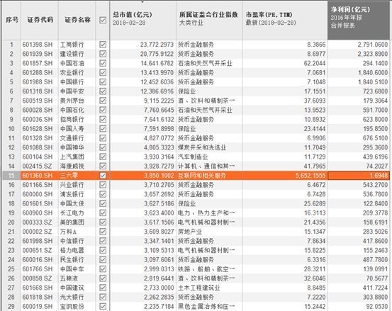 在全部A股中,三六零的市值名列前茅,超越了美的集团、格力电器等制造业龙头,以及万科A等房地产业龙头,是名副其实的A股最大市值互联网巨头。