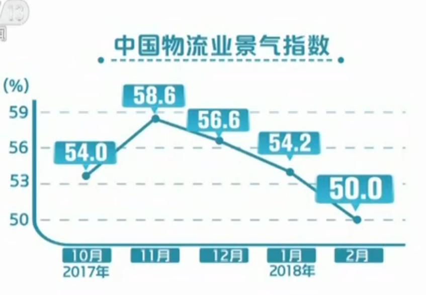 2月份中国物流业景气指数为50%,较上月回落4.2个百分点。另外,中国仓储指数也明显回落,回落到50%的临界线以下。