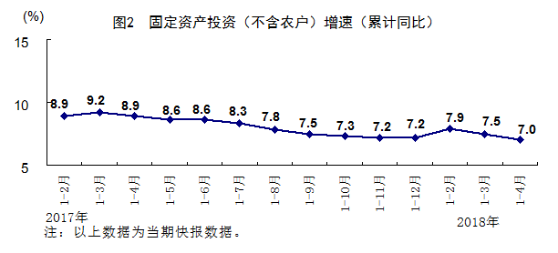总的来看,4月份国民经济延续了稳中有进、稳中向好的发展态势。但也要看到,外部环境不稳定不确定因素增加,国内发展不平衡不充分问题突出,经济持续健康发展的基础仍需巩固。要以习近平新时代中国特色社会主义思想为指导,深入贯彻党的十九大和中央经济工作会议精神,按照政府工作报告部署,坚持稳中求进工作总基调,以供给侧结构性改革为主线,保持宏观政策的连续性和稳定性,坚持扩大改革开放,深入实施创新驱动,不断增强内生动力,着力振兴实体经济,推动我国经济在实现高质量发展上不断取得新进展。